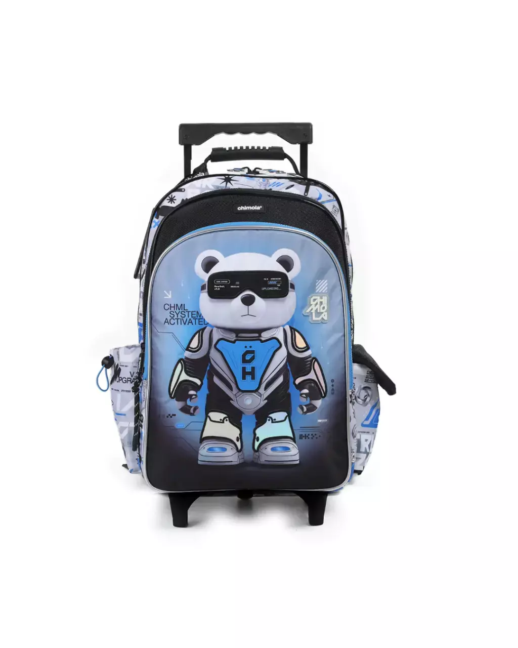 Una mochi pensada para quienes aman la tecnología, el diseño y las aventuras. Esta versión XXL de Bearbot combina funcionalidad con un universo gráfico futurista lleno de estilo. Su visor con efecto digital crea una experiencia sensorial única, donde los niveles, relieves y contrastes de materiales brillantes y mates se destacan en cada rincón. Tiene 2 compartimentos principales y un bolsillo frontal amplio, ideales para organizar todo con comodidad. Sus laterales —uno con solapa y otro ajustable— te permiten llevar tu botella siempre a mano. Además, incluye pullers de goma con el personaje y un tag personalizado para llevar tus datos con estilo. Su carro reforzado con ruedas de silicona asegura un andar cómodo, y las correas acolchadas permiten llevarla también de esta forma. Una mochi con carácter futurista, perfecta para quienes no paran de moverse.